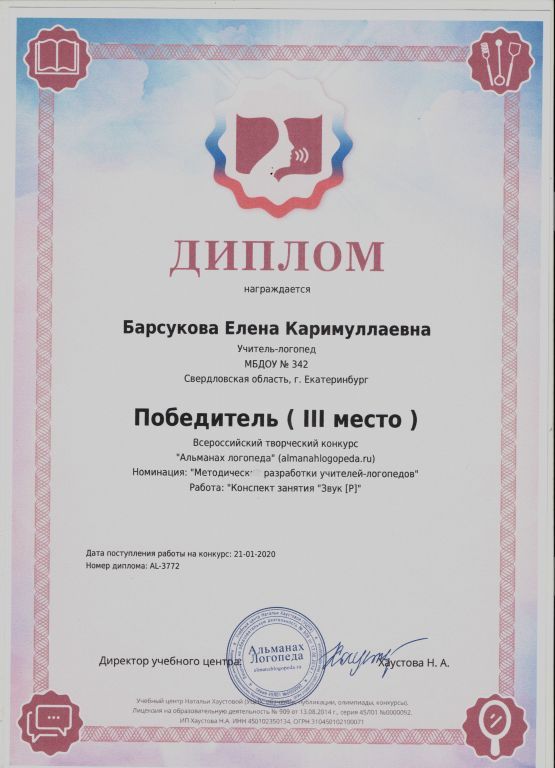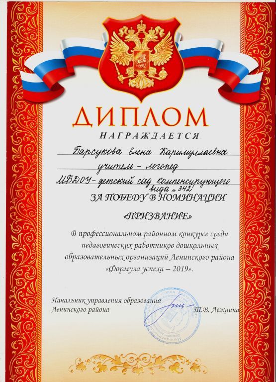 Присвоенная квалификация по диплому: учитель и логопед вспомогательной школы, олигофренопедагог дошкольного учреждения